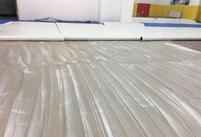 10、PVC地板施工方便嗎? 答:非常方便。如地面平整,可直接用膠粘貼;如地面不平整,可通過(guò)自流平水泥找平處理,然后再進(jìn)行粘貼。PVC地板施工人員鋪裝速度非?欤惶炜蛇_(dá)幾百至一千平米,施工完畢當(dāng)天即可投入使用。尤其適合不停業(yè)的商場(chǎng)、超市的改造。